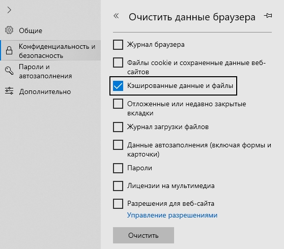 3. Отключите все остальные опции (если вы хотите очистить только кэш браузера).